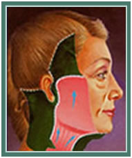 En el estiramiento de la cara con cicatriz corta se restaura el contorno facial juvenil por:
